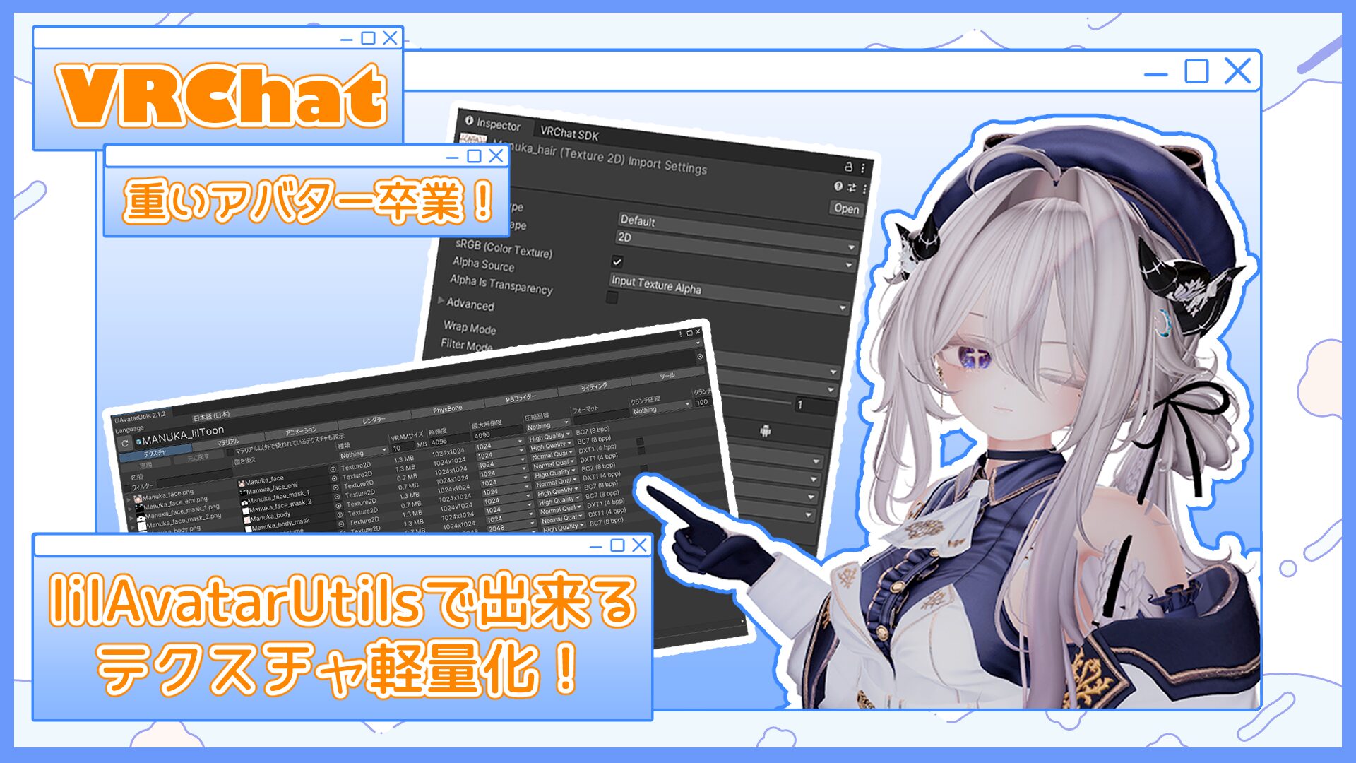 【2026年2月更新】重いアバター卒業!lilAvatarUtilsでできるテクスチャ軽量化術【VRChat対応】 更新日:2026年2月3日 公開日:2024年7月16日 Unity VRChatでアバターが重くなる原因の1つが「テクスチャ」です。 VRChatのアバターは見た目の多くの部分がテクスチャ(画像データ)で構成されており、ここを最適化することでVRChatの軽量化につなげることができます。 […] 続きを読む