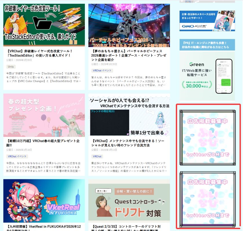 記事一覧ページおよびサイドバーに表示される広告枠です。