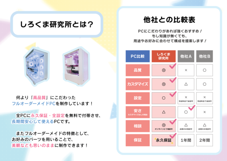 世界に1つだけのスタイリッシュナオーダーメイドPC、しかも永久的に保証もしてくれるつよつよなオーダーメイドPCショップをしている。 かっつぇさんとのコラボによるオーダーメイドPCに関する記事になります!! V …