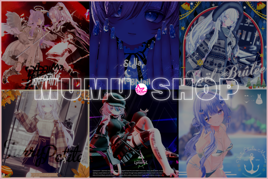 衣装shop mumu様よりご協賛頂いております。直接見せて頂いたのですがクオリティが非常に高いのが印象に残っています。また対応アバター数も群を抜いて多い方です。