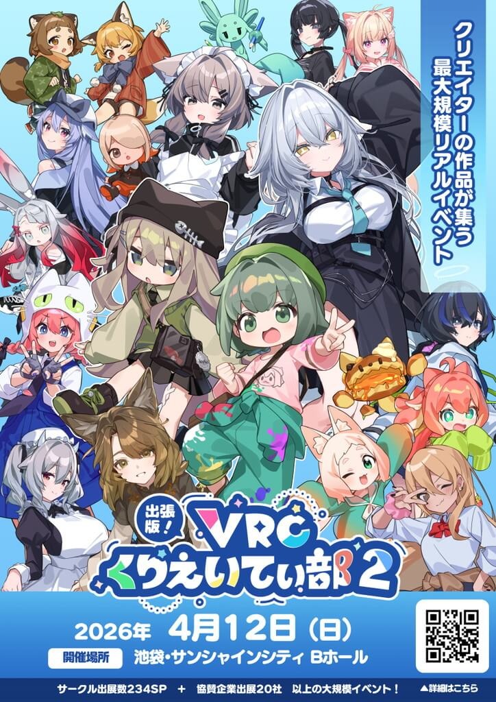 クリエイター向けVRChatグループ「VRCくりえいてぃ部」はVRSNSユーザー向けのオフライン展示・即売会イベント「出張版!VRCくりえいてぃ部2」の出展サークル及び協賛企業の一覧を公開いたしました!