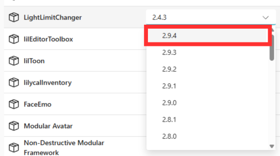 Manage PackagesにLightLimitChangerのバージョン1.14.3ではなくバージョン2.00以降が表示されるように変更していきます。