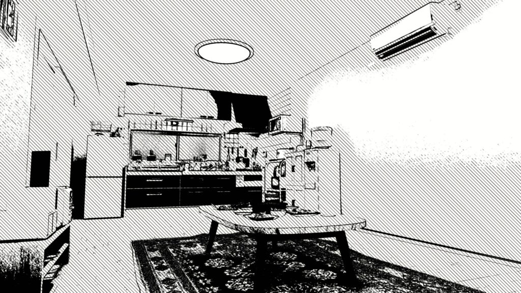 - 白黒漫画風の質感演出
