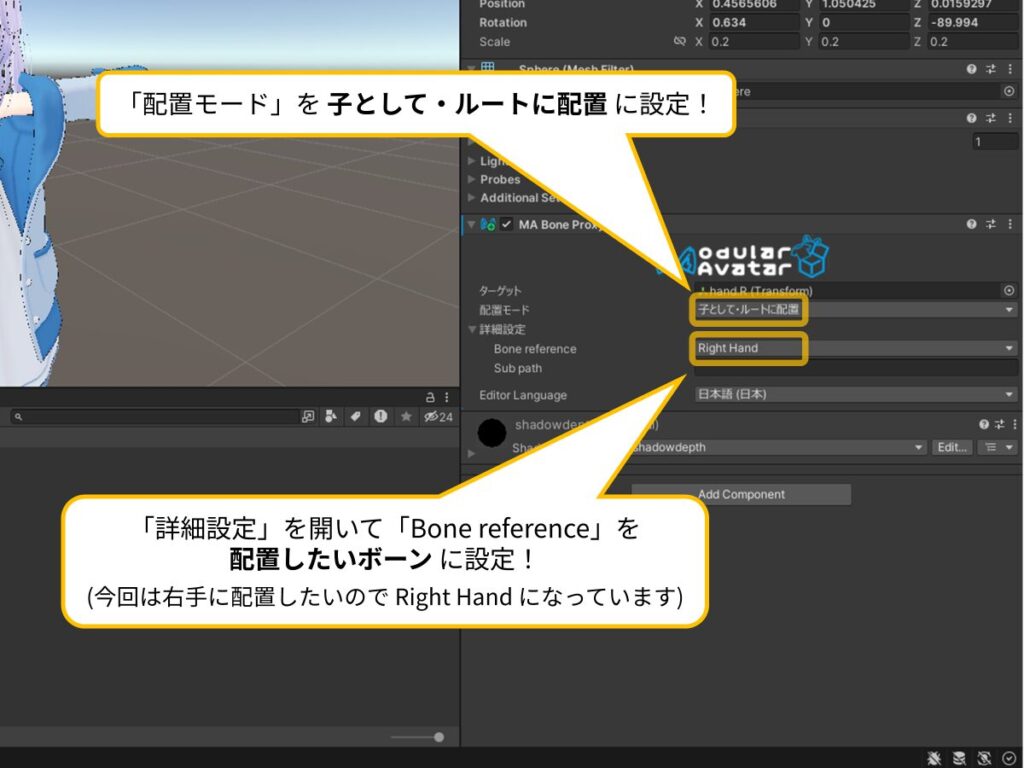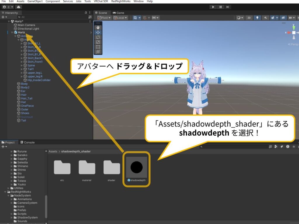 「Shadowdepth Shader」は、手や体が近づいたときにその部分だけを自然に暗くして「なでなで」の没入感を高めるシェーダーです!