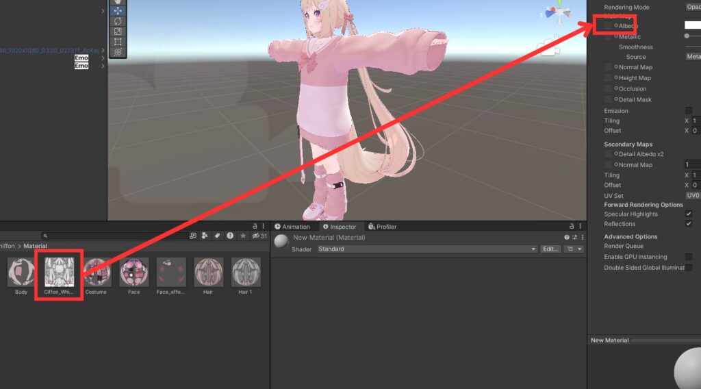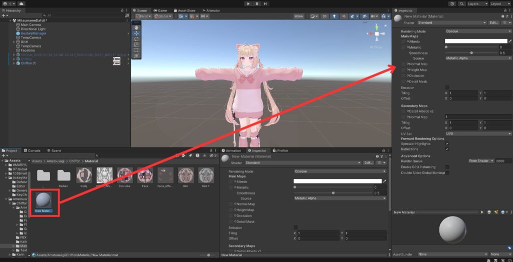 そこで、解説②ではアバターに既存で設定されているマテリアルをコピペして設定を保持しつつ、
