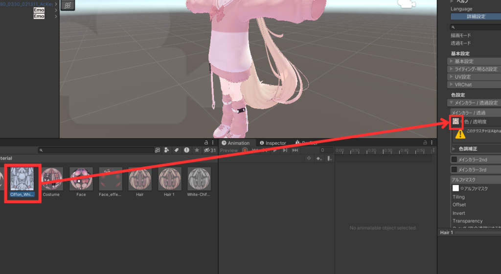 入れ替えたいテクスチャを選択(今回はHair)し、