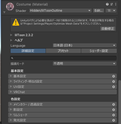 改変をする上では新たにシェーダーの設定を変更しなければならず、コスパ最悪です。