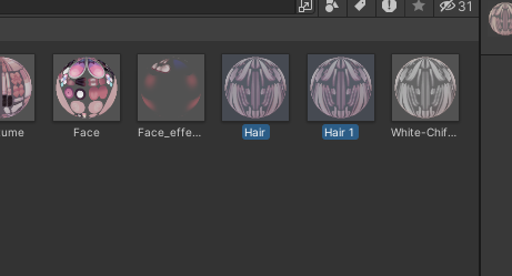今回の場合、髪の色を変えたいので、髪のマテリアルであるHairをコピペします。