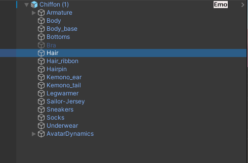 今回はアバター(シフォンちゃん)の髪のテクスチャを変更し、髪の色を変える方法を解説していきます。