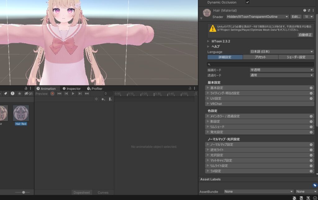 おまけ lilToonの設定を変更して髪色を変えてみよう