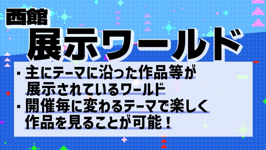 西館は作品展示に特化したワールドです。
