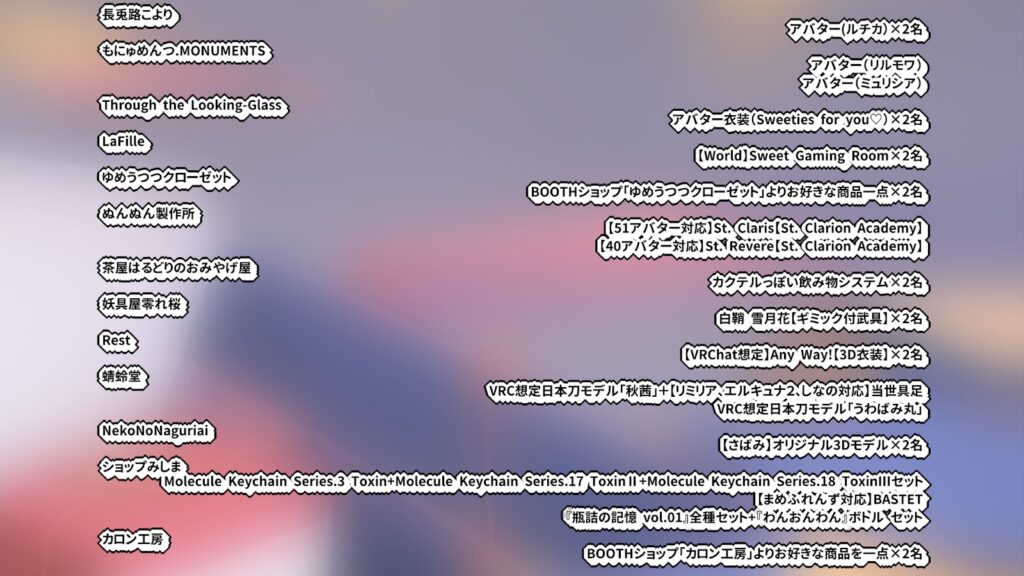 当選品一覧