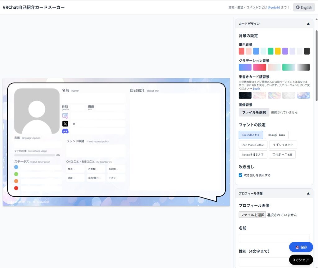 VRChat自己紹介カードメーカー