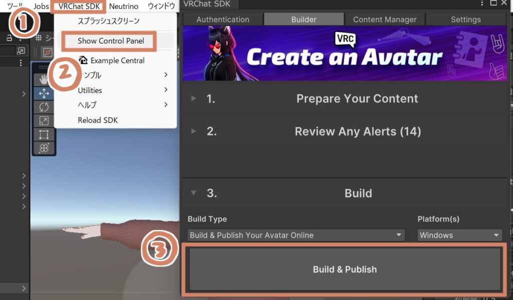 「Show Control Panel」からウィンドウを開き、「Build&Publish」をクリックで完了です。