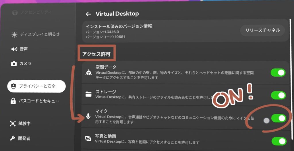 解決策|Quest側Virtual Desktopにマイクへのアクセスを許可