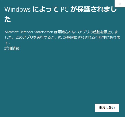 ↓の画面が出たら、【詳細情報】を押して出てきた【実行】ボタンをクリックします。するとアプリのダウンロードが開始し、ダウンロードすることができます。