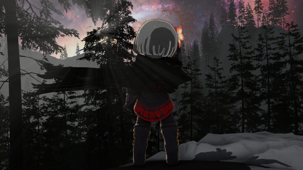 雪景色とオーロラが綺麗なワールドです!後ろ姿も撮ってみましょう!