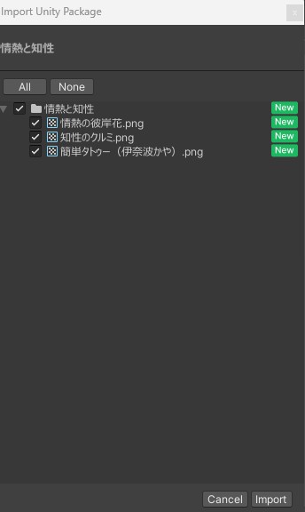 アバターと、購入またはダウンロードしたタトゥーを入れ(import)その後、ヒエラルキー(Hierarchy)に改変予定のアバターを入れる。