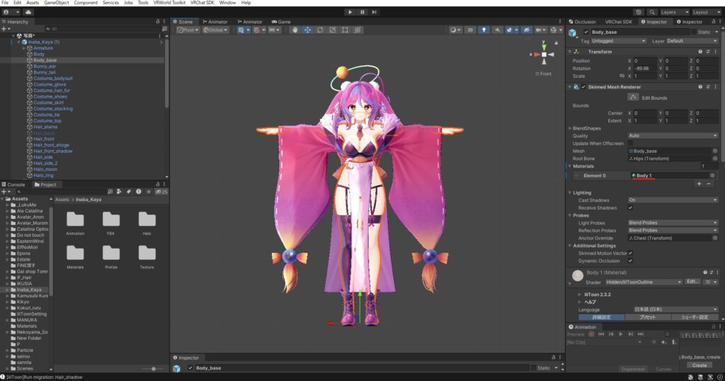 その後、ヒエラルキーに改変予定のアバターを入れる。