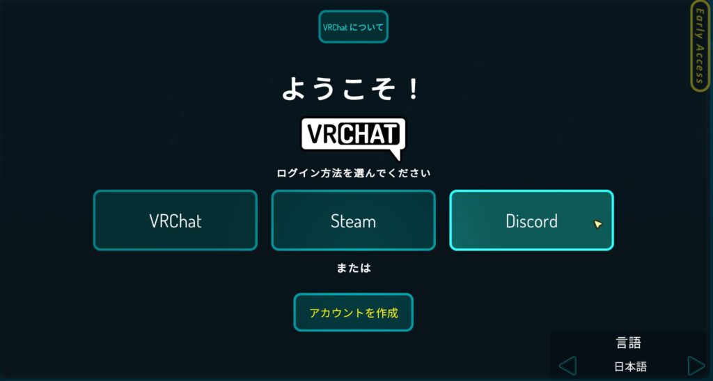 VRChatにログインするとき、アカウントに「Discord」を紐づけておくことでDiscord経由でログインすることができるようになりました。(新規作成も可能)