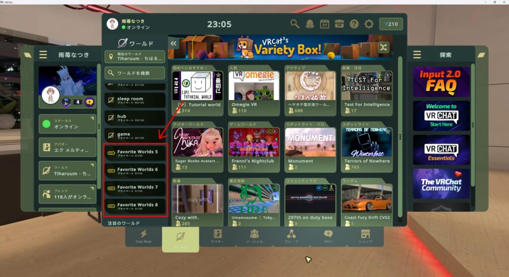 このアップデートでは、「ワールドのお気に入り上限増加」「グループの自動招待」などの新機能の追加やUI変更・バグ修正などが行われました。