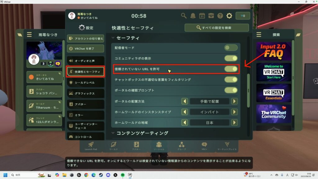 - VRChatの設定の不審なURLを許可する