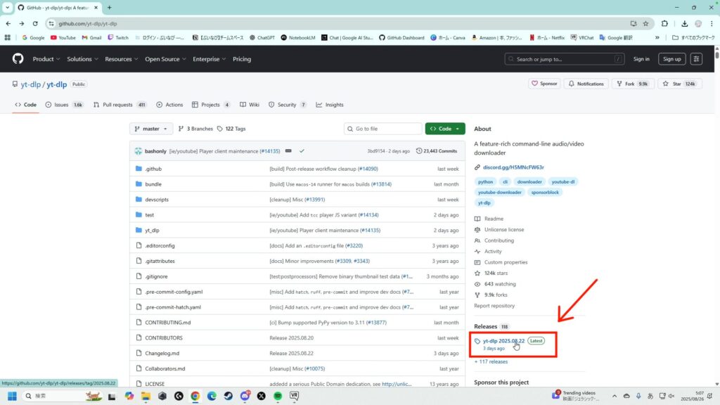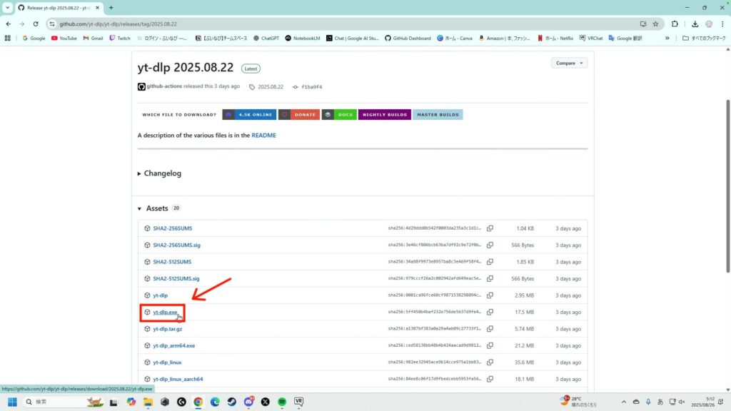 その中にある「yt-dlp.exe」をダウンロードします。