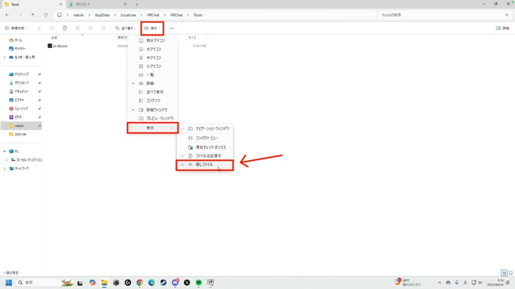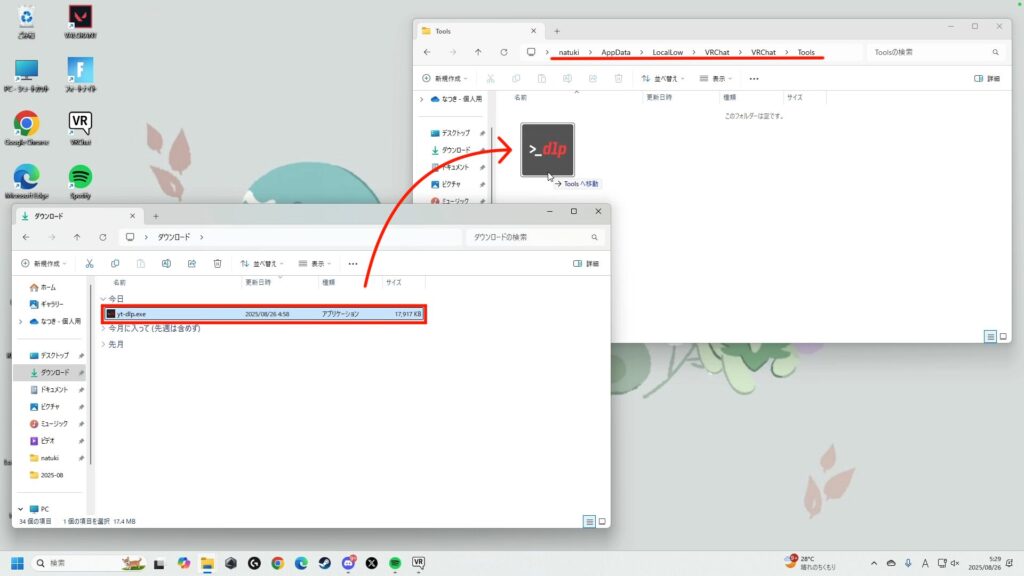 ダウンロードされたものを「C:\Users\ユーザー名\AppData\LocalLow\VRChat\VRChat\Tools」に移動もしくはコピー&ペーストします。